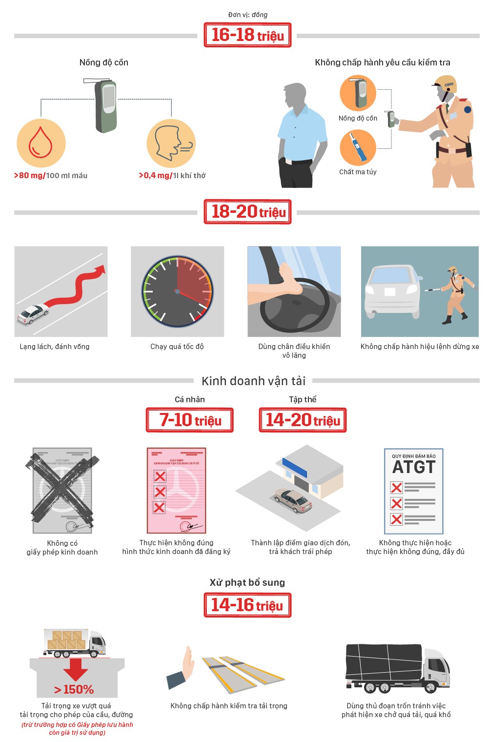10 lỗi vi phạm giao thông phạt trên 10 triệu đồng với tài xế